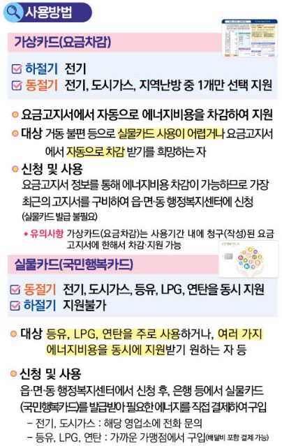 - 세대원이 정부의 동절기 연료비(등유나눔카드 등)나 전기요금 지원을 이미 받고 있는 경우 (중복 불가)